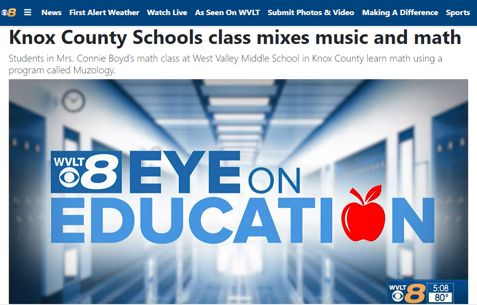KNOXVILLE, Tenn. (WVLT) - Students in Mrs. Connie Boyd’s math class at West Valley Middle School in Knox County learn math using a program called Muzology. Music videos, with a singer singing about a concept, have students dancing in their seats while learning a math. “I used to kind of struggle with math but I’ve noticed that I’m starting to understand it more. Because the videos explain it. And they also show you how to do it,” said Cate Smithely, a student in Boyd’s seventh grade honors math class.